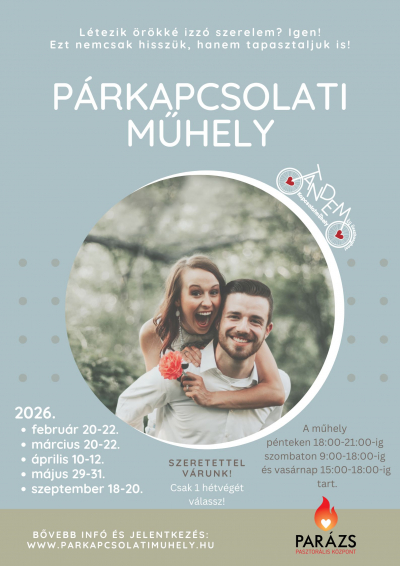 Párkapcsolati Műhelyünket 2026-ben is 5 alkalommal tartjuk meg Kecskeméten.