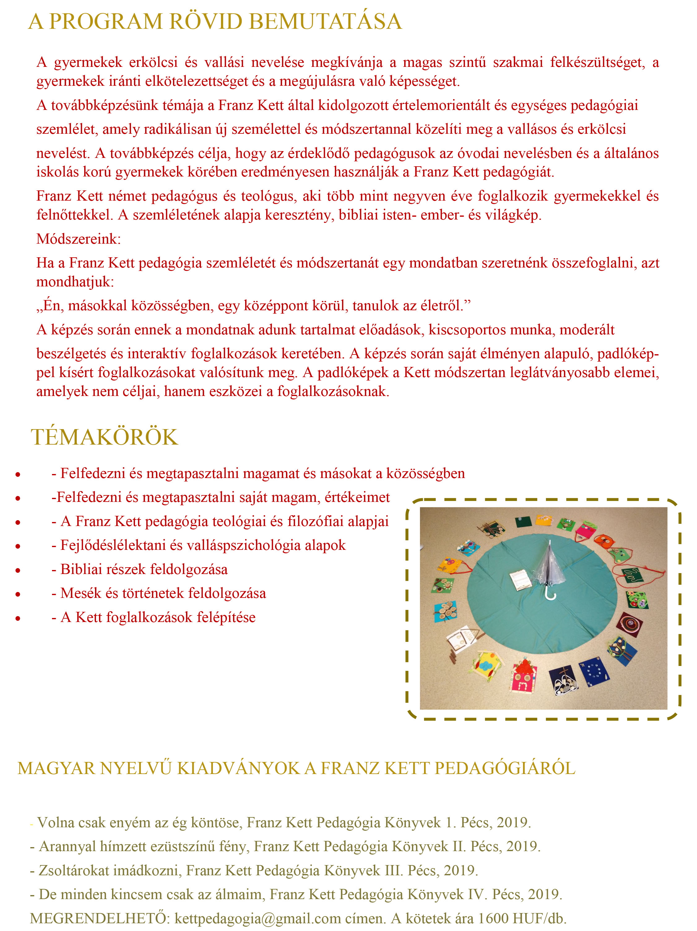 Támogatott ár: 10.000 Ft a Kalocsa-Kecskeméti Főegyházmegye hitoktatói, pedagógusai, óvodapedagógusai számára.